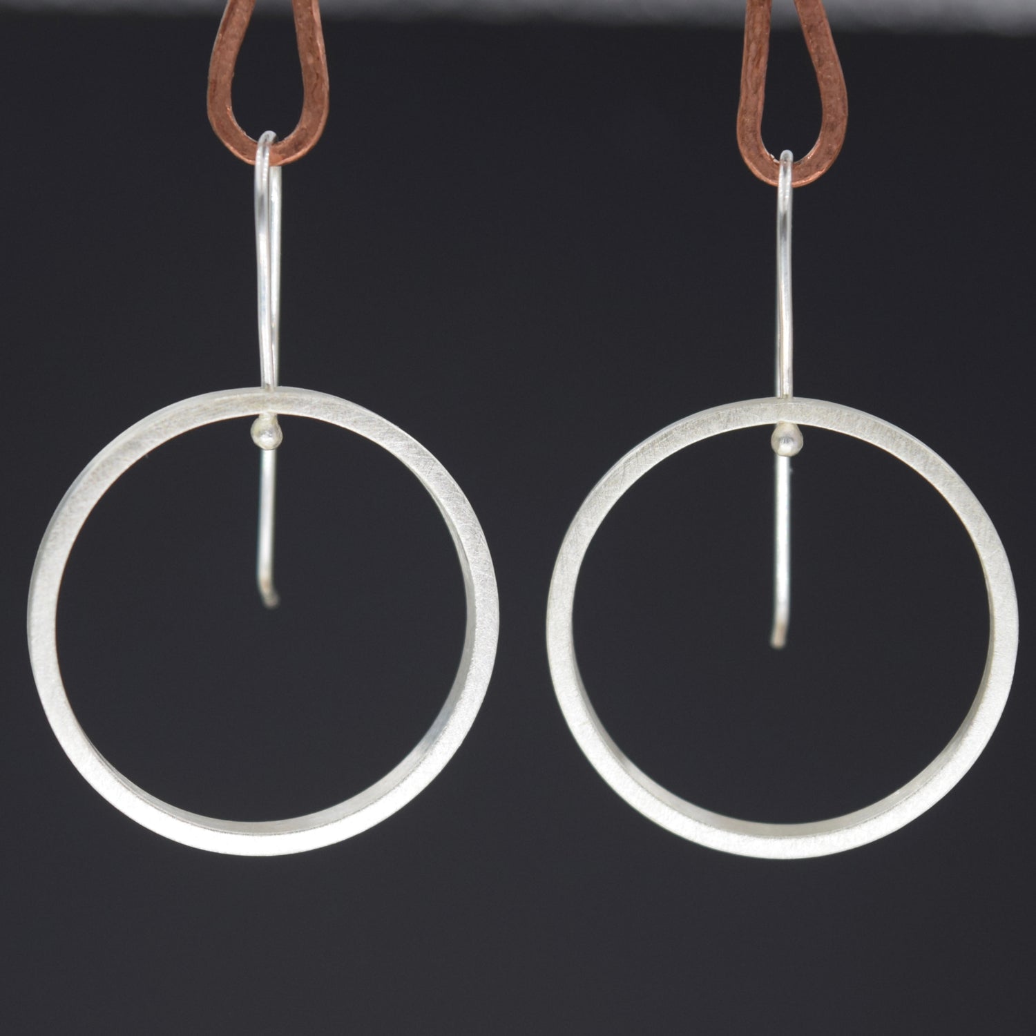 These Circle Spinner Earrings are a playful addition to any outfit. Featuring kinetic circles made of sterling silver, they add a touch of movement and fun to your look. Perfect for any occasion, these earrings are a must-have for any fashion-forward individual. Enjoy the unique style and versatility of these earrings today.