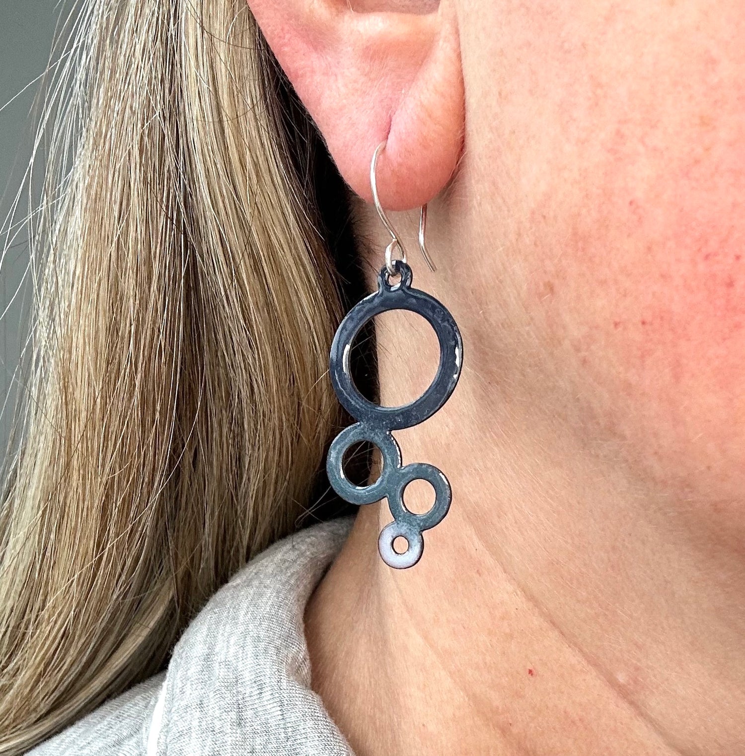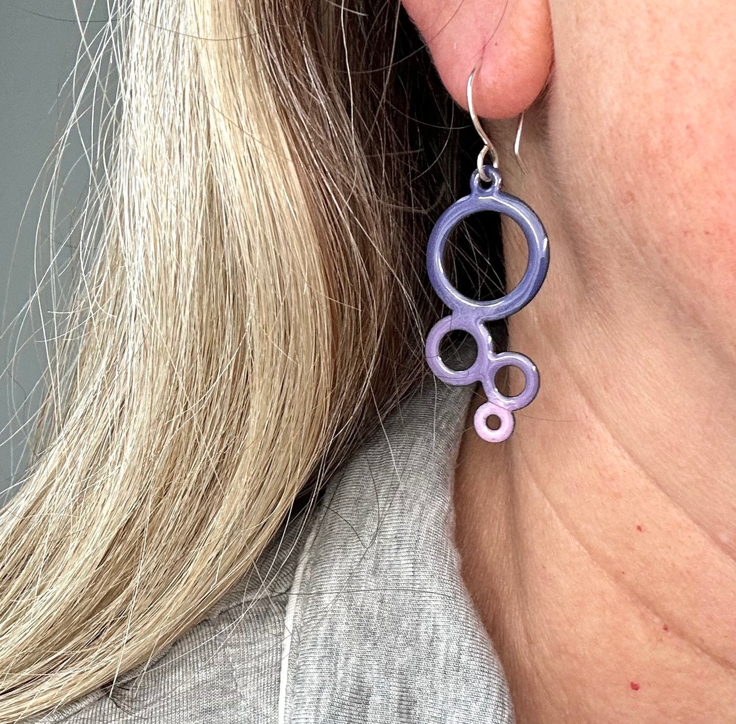 Elevate your style with our Stacked Circles with Ombre Colors. This exquisite piece features geometric circles made of sterling silver and enamel on copper, creating a lightweight and eye-catching design. The ombre enamel colors add a touch of modernity to this timeless accessory.